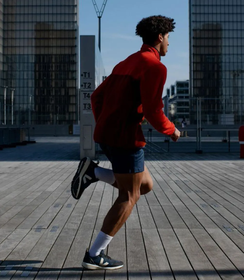 Das Alveomesh ist ein technischer Stoff, der ausschließlich aus ausschließlich aus recycelten Plastikflaschen besteht. Es bringt Atmungsaktivität, Flexibilität und Leichtigkeit in den Schuh.