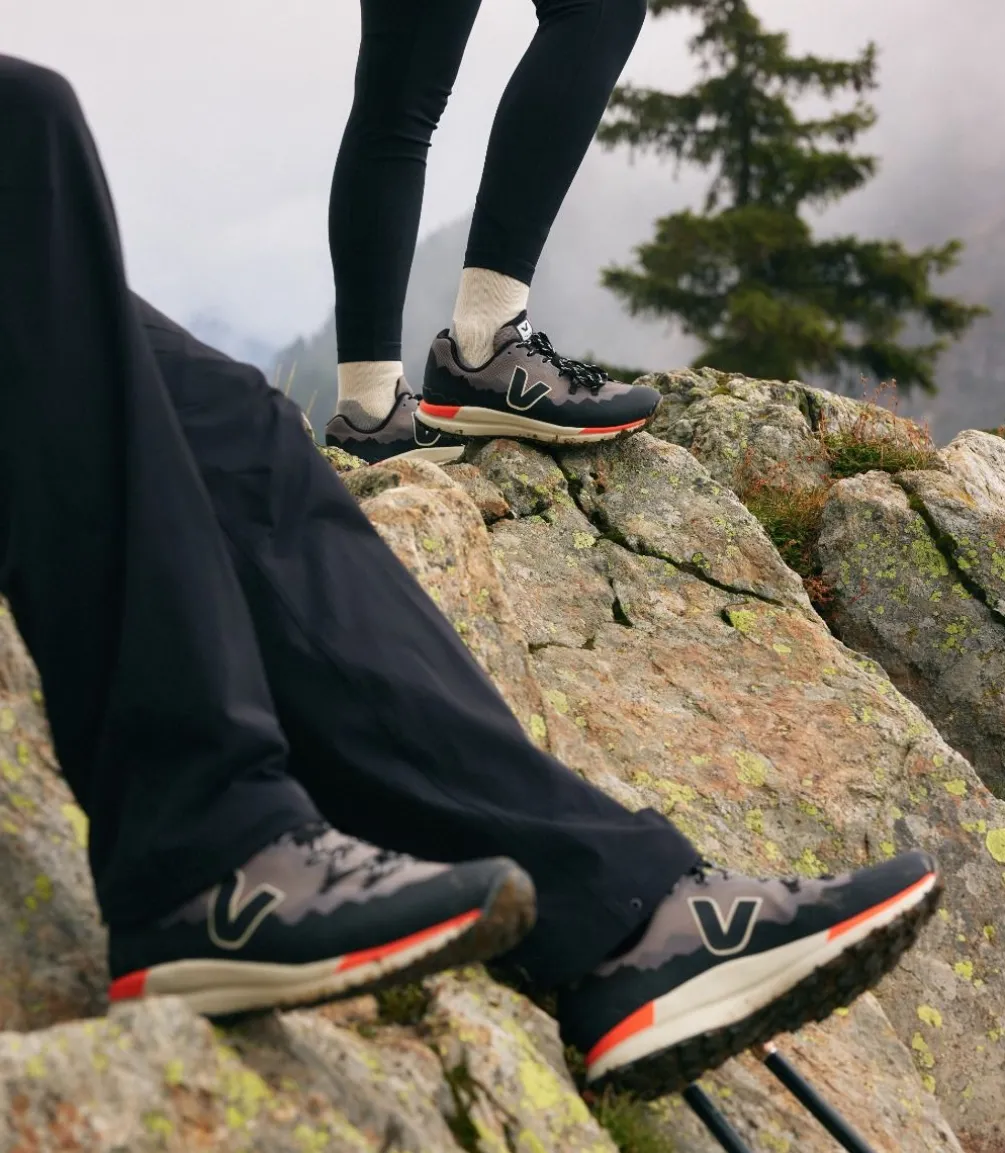 VEJA kreiert einen Schuh, der für Trekking und Wanderungen konzipiert wurde: Der Fitz Roy, ein technischer Schuh mit einer starken und stabilen Sohle, dank multidirektionaler Stollen und einer rock-plate.