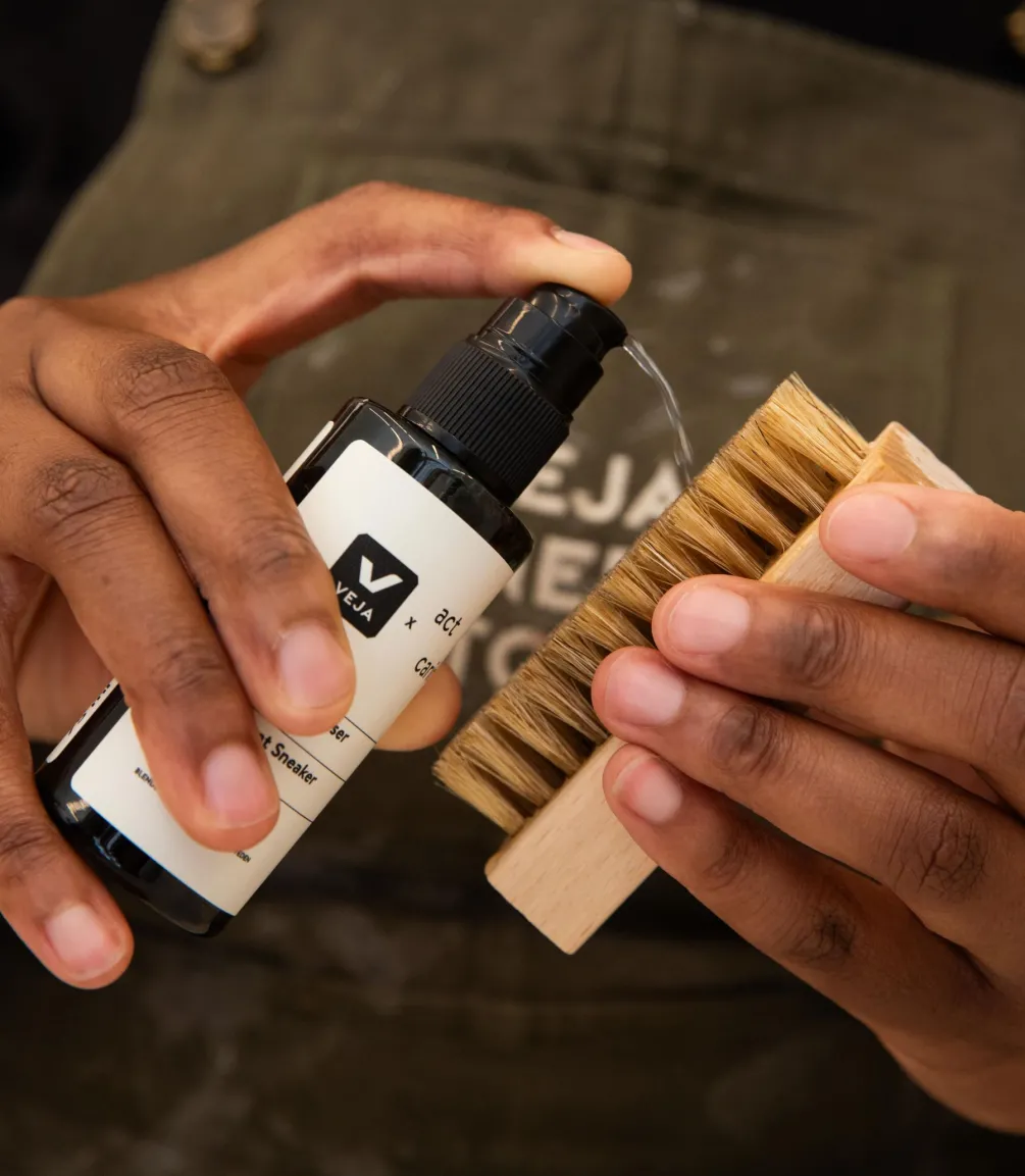 VEJA und Act of Caring (AOC) bieten einen restaurierenden Lederreiniger für Sneaker, Jacken, Taschen oder Lieblingsgegenstände aus Leder und veganem Leder an.