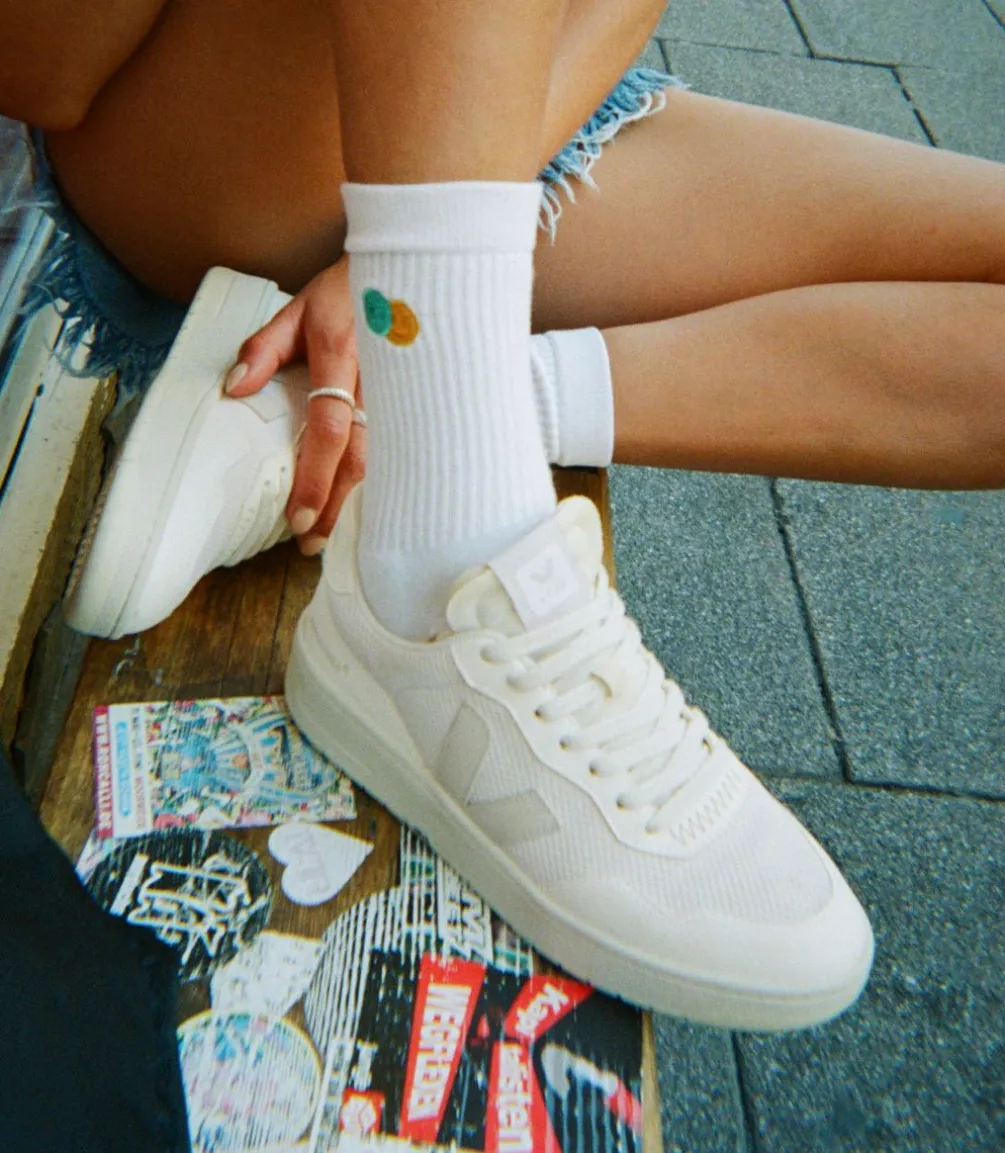 VEJA und Asphaltgold haben sich zusammengeschlossen, um eine neue V-90 mit einem sich entwickelnden Design zu kreieren. Diese Zusammenarbeit hebt ein Material hervor, das im Laufe der Zeit sein Aussehen verändert. Wenn es Sonnenlicht ausgesetzt wird, entwickelt sich das Leder von seinen anfänglichen grauigen Tönen zu warmen Gelbtönen, wodurch jedes Paar einzigartig wird.