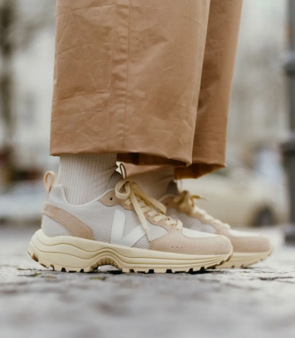 Paneele : Veloursleder, Alveomesh und T.P.U. Details und J-Mesh (50% Bio-Baumwolle, 29% Jute, 21% recyceltes Polyester)