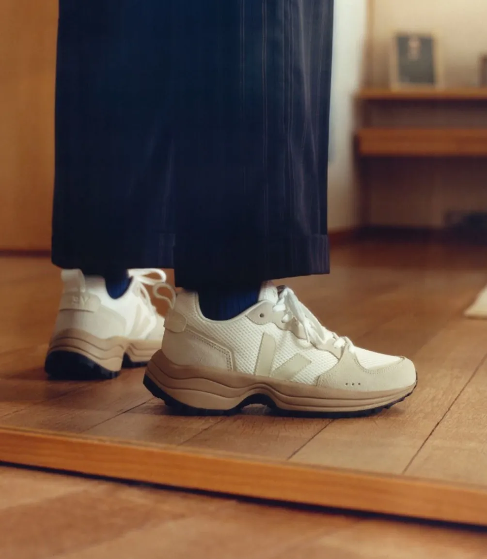 Das Alveomesh ist ein technisches Gewebe, das ausschließlich aus recyceltem Polyester besteht. Es verleiht dem Schuh Atmungsaktivität, Flexibilität und Leichtigkeit.