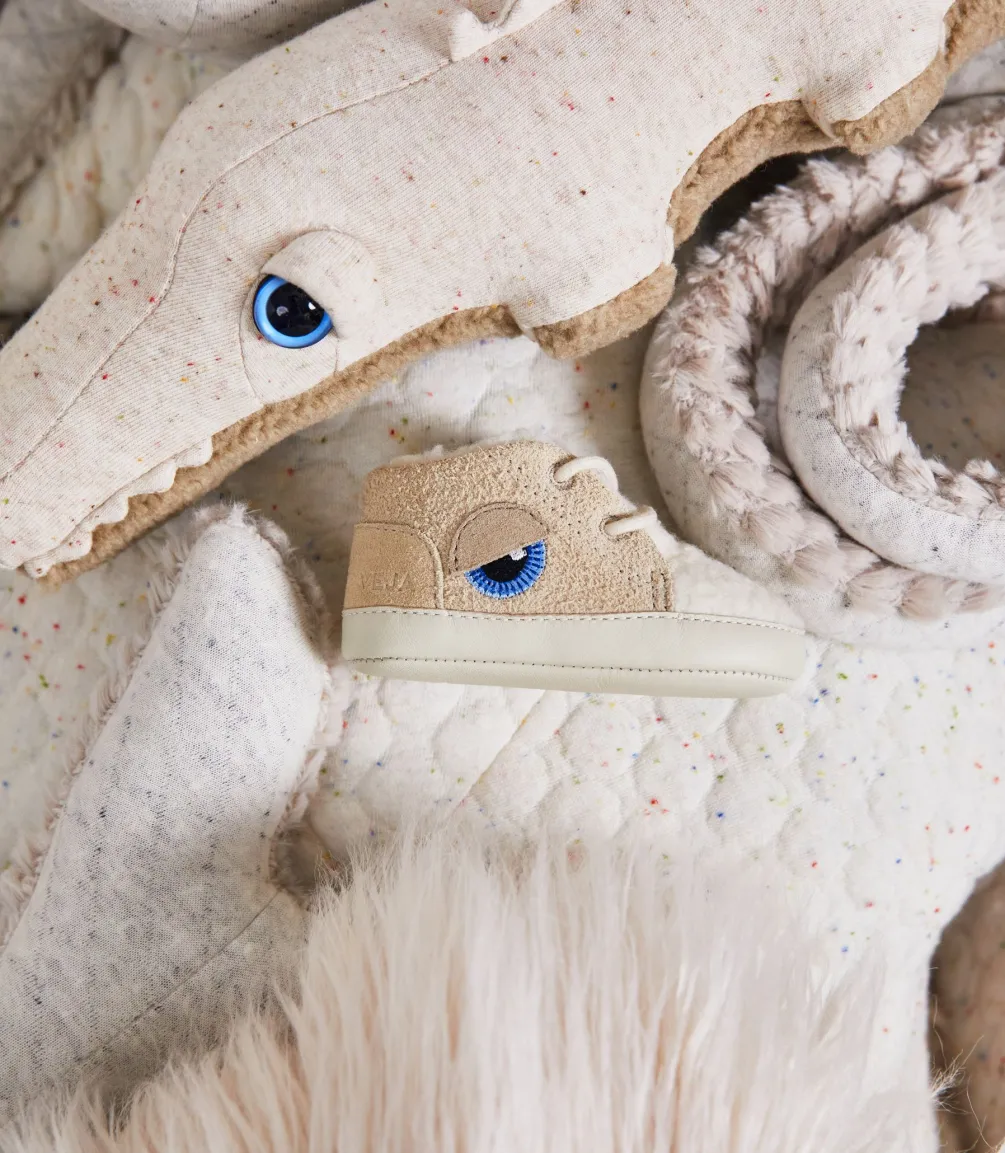 VEJA und BigStuffed haben sich zusammengeschlossen, um zwei unisex Kinder-Modelle aus Wildleder und Fleece zu kreieren. Diese Zusammenarbeit konzentriert sich auf unsere beiden Kindermodelle, das V-10 und das Baby.
