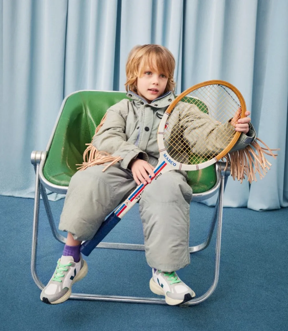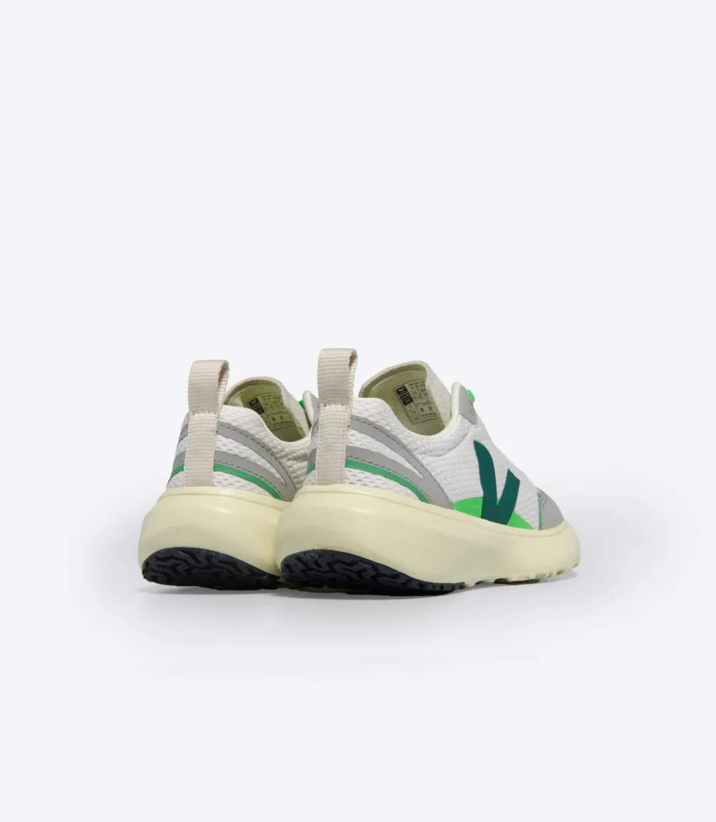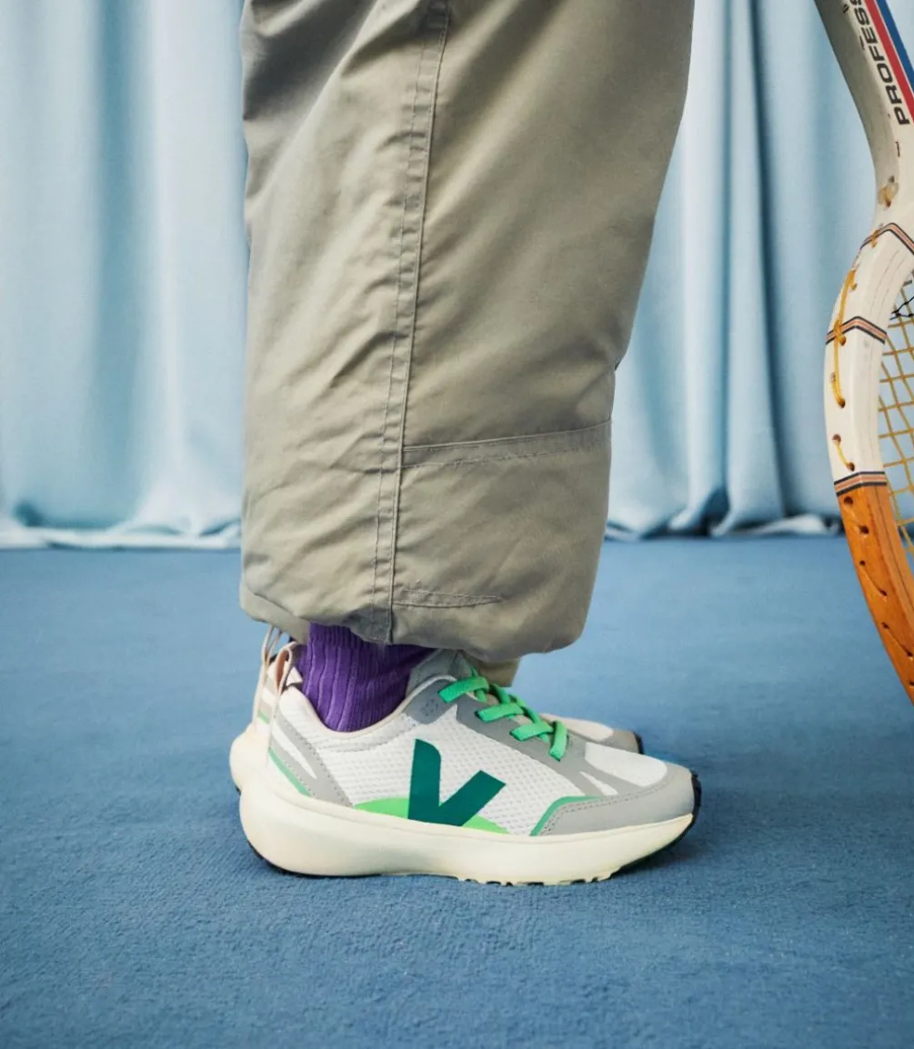 Das Alveomesh ist ein technisches Gewebe, das ausschließlich aus recyceltem Polyester besteht. Es sorgt für Atmungsaktivität, Flexibilität und Leichtigkeit des Schuhs.