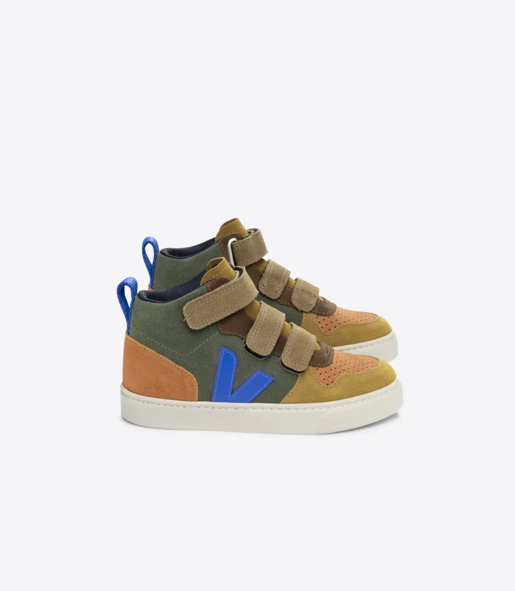 Veloursleder ist die Rückseite von Rindsleder, die abgeschliffen wird, um ihr ein weiches und geschmeidiges Aussehen zu verleihen. Es stammt von Farmen in Rio Grande do Sul. Es wird in Brasilien ohne gefährliche oder verbotene Chemikalien gegerbt. VEJA verwendet Färbemittel die den gesetzlichen Vorschriften entsprechen. Während des Gerbprozesses wird Wasser nur in begrenztem Umfang verwendet. Dieses Wildleder wird anschließend mit wasserabweisenden Ölen ohne PFCs (chemische Verbindungen) beschichtet, um die Sneakers vor leichtem Regen zu schützen.