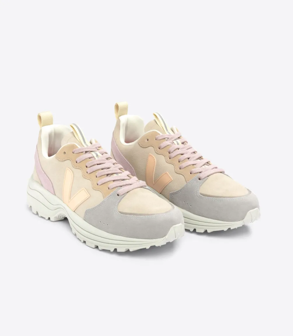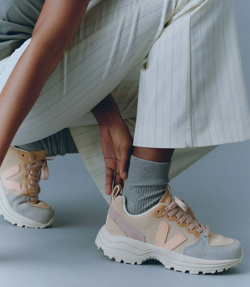 Das Veloursleder wird aus der Unterseite von Rindsleder hergestellt, das zuvor gebürstet wurde, um es weicher und flexibler zu machen. Er stammt aus Betrieben im Süden Brasiliens (Rio Grande do Sul). Es wird in Brasilien unter Einhaltung der REACH-Normen gegerbt. Besondere Aufmerksamkeit wird dem Wasserverbrauch während des Gerbprozesses gewidmet. Das Veloursleder ist außerdem mit wasserabweisenden Ölen ohne PFCs (chemische Verbindungen) beschichtet, um die Sneaker vor leichtem Regen zu schützen.