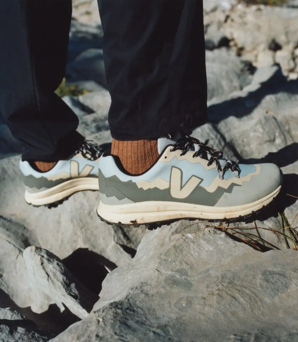 VEJA hat einen Schuh für Trekking und Wandern entwickelt: Der Fitz Roy, ein technischer Schuh mit einer starken und stabilen Sohle, dank multidirektionaler Stollen und einer rock-plate.
