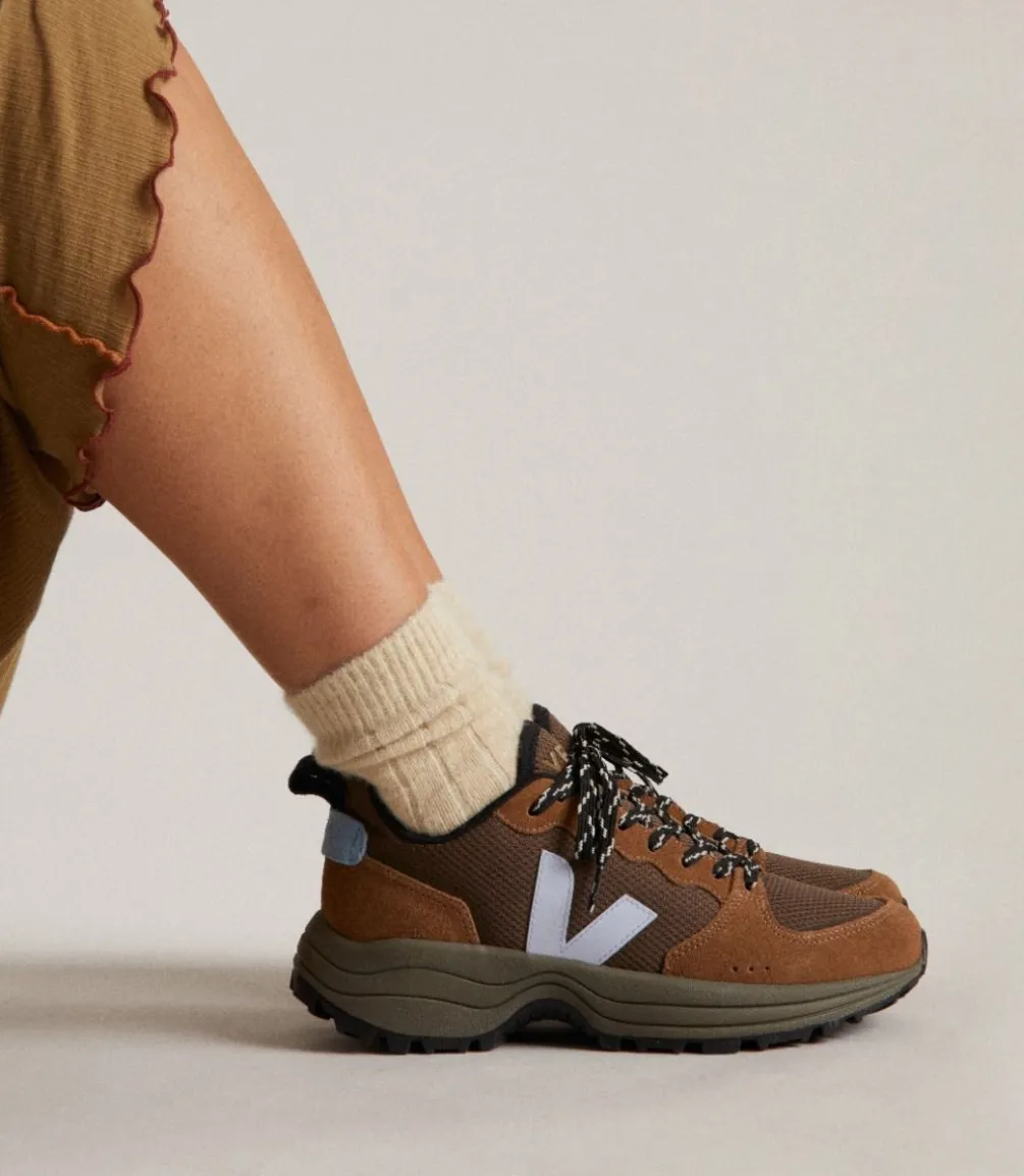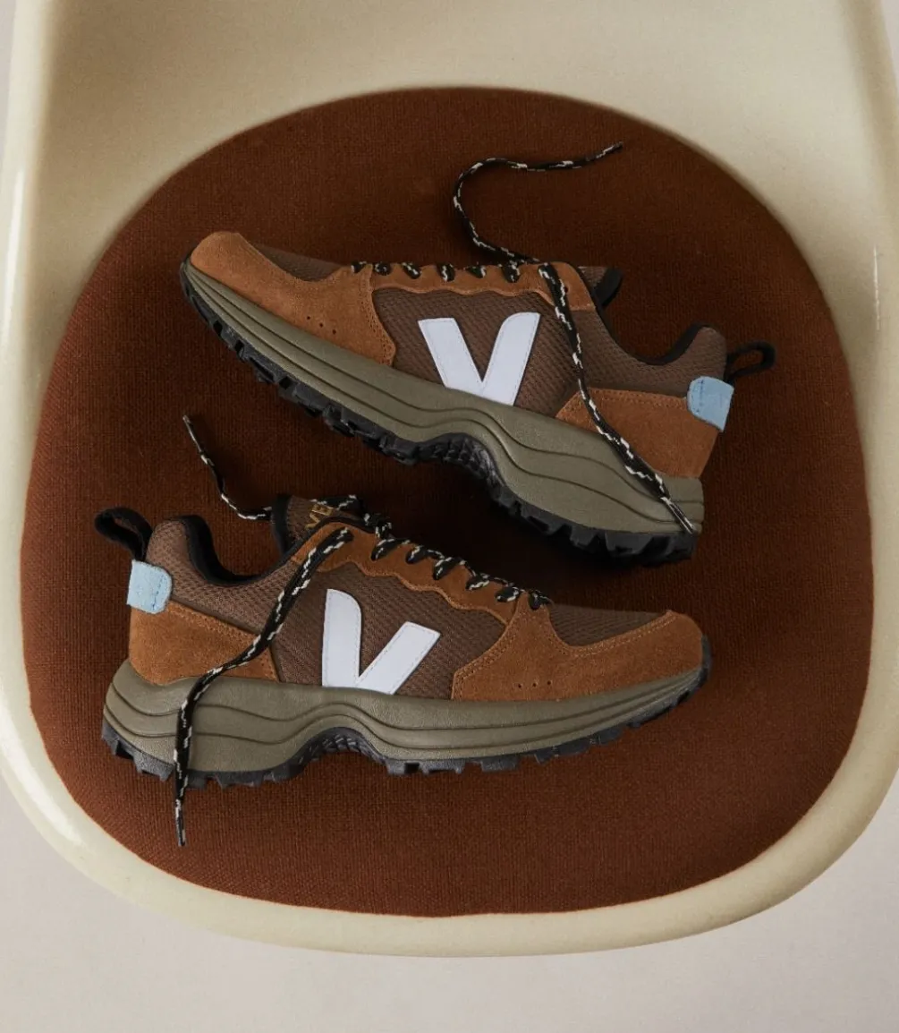 Das Alveomesh ist ein technisches Gewebe, das ausschließlich aus recyceltem Polyester besteht. Es sorgt für Atmungsaktivität, Flexibilität und Leichtigkeit des Schuhs.