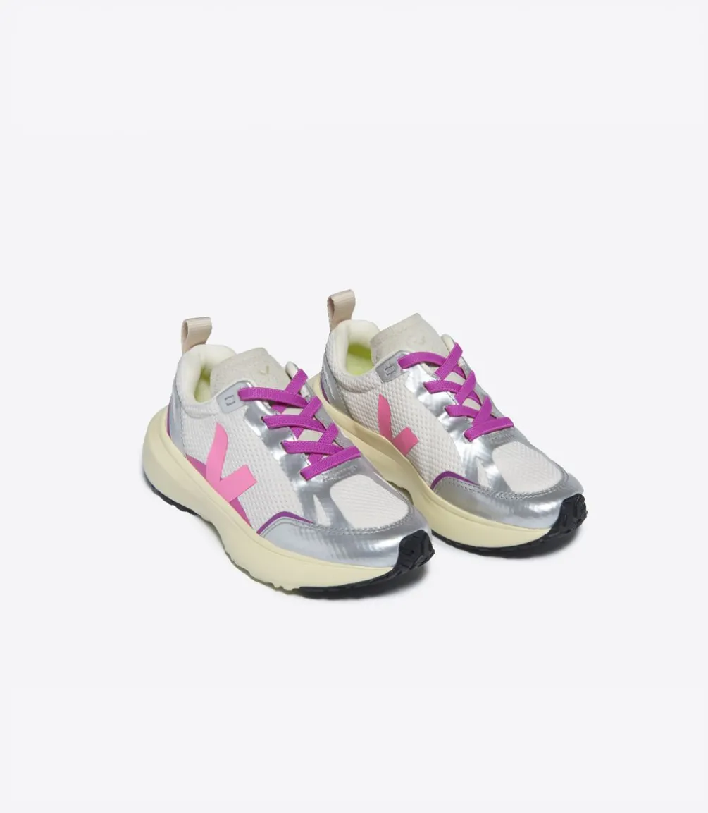 Das Alveomesh ist ein technisches Gewebe, das ausschließlich aus recyceltem Polyester besteht. Es sorgt für Atmungsaktivität, Flexibilität und Leichtigkeit des Schuhs.
