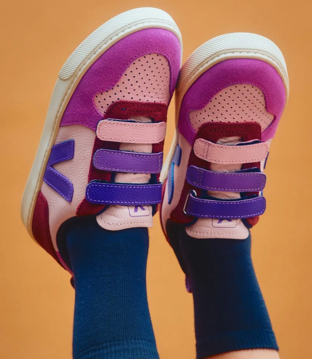 Veloursleder ist die Rückseite von Rindsleder, die abgeschliffen wird, um ihr ein weiches und geschmeidiges Aussehen zu verleihen. Es stammt von Farmen in Rio Grande do Sul. Es wird in Brasilien ohne gefährliche oder verbotene Chemikalien gegerbt. VEJA verwendet Färbemittel die den gesetzlichen Vorschriften entsprechen. Während des Gerbprozesses wird Wasser nur in begrenztem Umfang verwendet. Dieses Wildleder wird anschließend mit wasserabweisenden Ölen ohne PFCs (chemische Verbindungen) beschichtet, um die Sneakers vor leichtem Regen zu schützen.