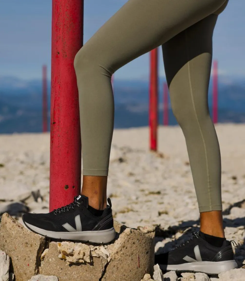 Das Alveomesh ist ein technisches Gewebe, das ausschließlich aus recyceltem Polyester besteht. Es bringt Atmungsaktivität, Flexibilität und Leichtigkeit in den Schuh.