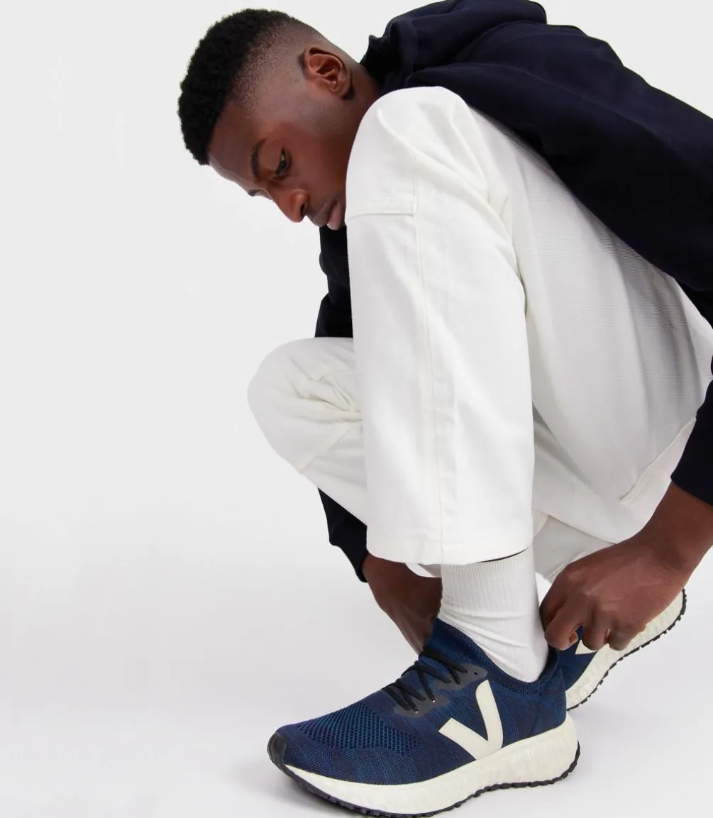 V-Knit ist eine Stricktechnik, die für Elastizität und Anpassungsfähigkeit an den Fuß sorgt. Es wird in einem Stück gestrickt, um Schichten und Nähte zu reduzieren. Der Turnschuh ist leicht und bequem, während der Fuß atmen kann und gut gestützt wird. Diese Technik ermöglicht es, den Materialabfall zu verringern, da das Material nicht geschnitten werden muss und somit kein Abfall entsteht.
